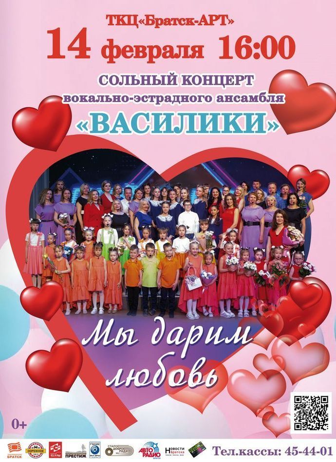 Один из самых опытных вокальных коллективов Братска готовит для зрителей концерт в ритме любви. Музыкальный вечер будет особенным. Участники коллектива постараются не оставить никого равнодушными, ведь петь будут о самом светлом чувстве. Программа будет разнообразной – от вечной классики до современных романтических хитов.