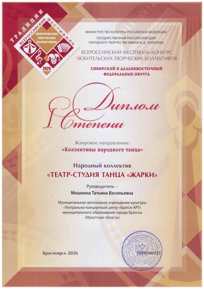 Полное название коллектива: Народный коллектив «Театр-студия танца «Жарки»